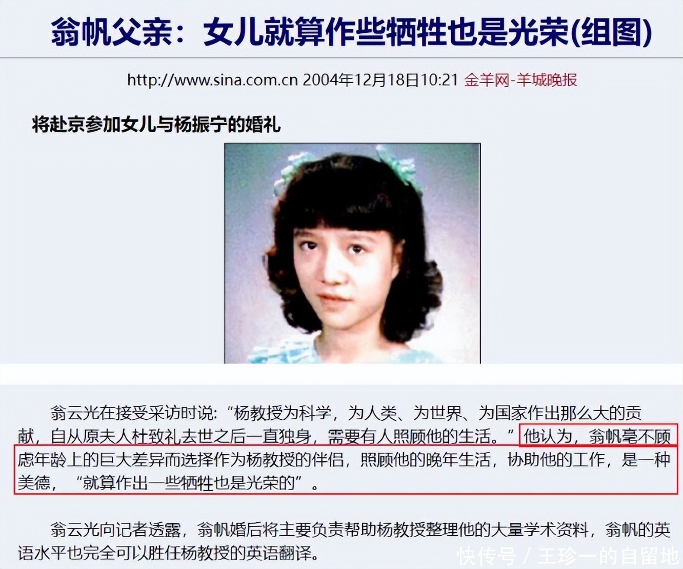 有人认为杨振宁骗了小姑娘,有人认为翁帆是贪图名利。